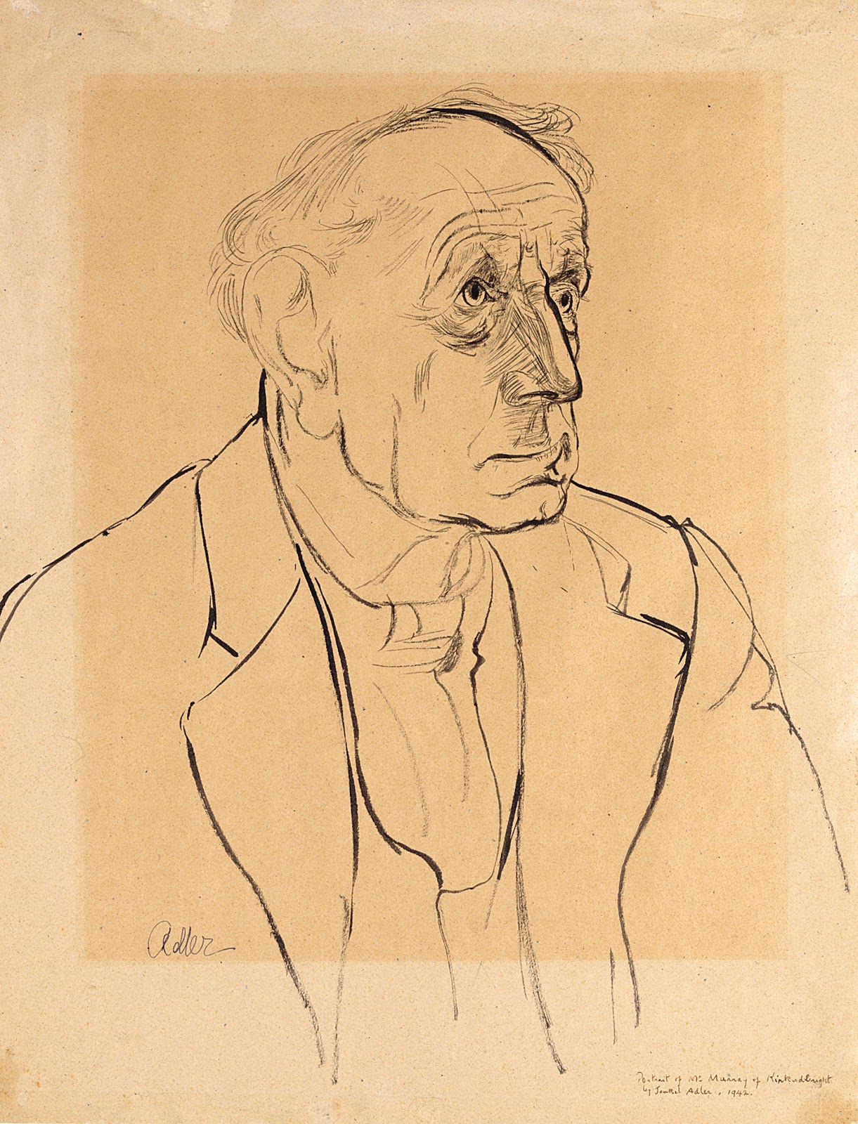 Adler was born in Poland and studied art in Düsseldorf before being conscripted into the Russian army in the 1914-18 war. He went to Germany after the war where he lectured at the Akademie der Kunst, Düsseldorf, until his work was declared ‘degenerate’ by the Nazis. He moved to France where he worked with S. W. Hayter (1901-1988) at the Atelier 17. When he enlisted in the Polish Free Army during the Second World War, he was sent to Scotland (where he drew this portrait) before settling in London. His images have been described as being ‘expressive of a melancholy acceptance of fate’, of which the sitter here is a striking example.